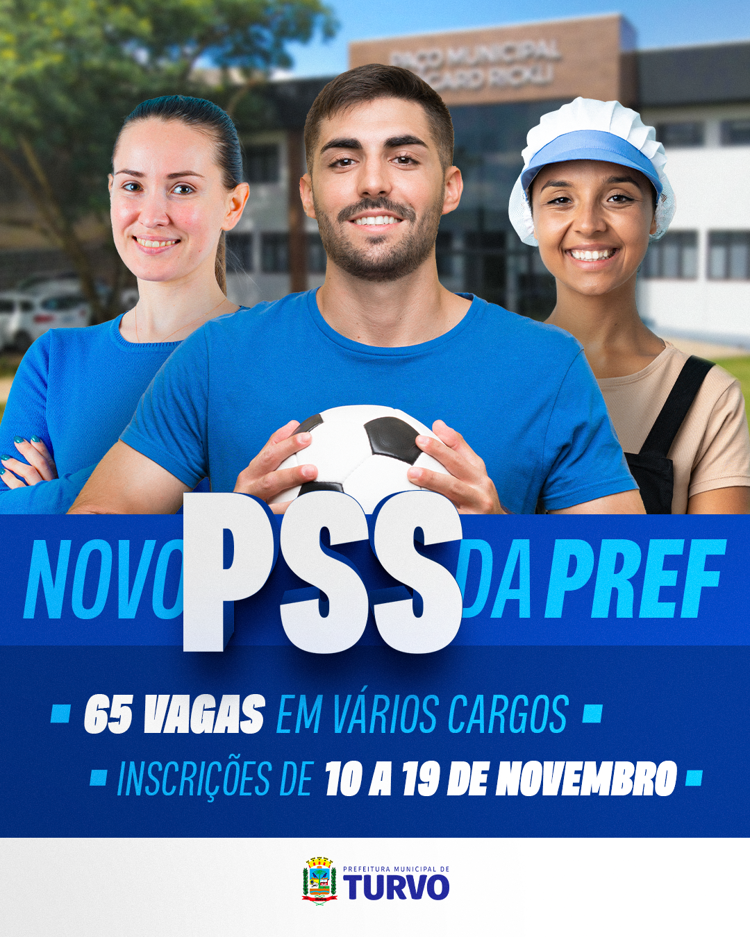 URL https://www.turvo.pr.gov.br/noticias/prefeitura-de-turvo-divulga-processo-seletivo-simplificado-com-65-vagas-em-diversas-areas Imagem Desktop Informe uma imagem para ser visualizada no desktop. Recomendado utilização uma imagem na proporcão de 3:1. Ex 1280x590px. Descrição para Desktop Caso preenchido, este valor será visualizado na versão desktop do Carrossel. Imagem Tablet Informe uma imagem para ser visualizada no Tablet. Recomendado utilização uma imagem na proporcão de 16:9. Ex 1280x720px Utilizar Título e Descrição do Desktop para Tablet não Título para Tablet Caso preenchido, este valor será visualizado na versão tablet do Carrossel. Descrição para Tablet Caso preenchido, este valor será visualizado na versão tablet do Carrossel. Imagem Celular Informe uma imagem para ser visualizada no celular. Recomendado utilização uma imagem na proporcão de 4:3. Ex 800x600px. Utilizar Título e Descrição do Desktop para Celular não Título para Celular Caso preenchido, este valor será visualizado na versão celular do Carrossel. Descrição para Celular Caso preenchido, este valor será visualizado na versão celular do Carrossel. Configurações Nome curto Esse nome será exibido na URL. pss-4-2025
